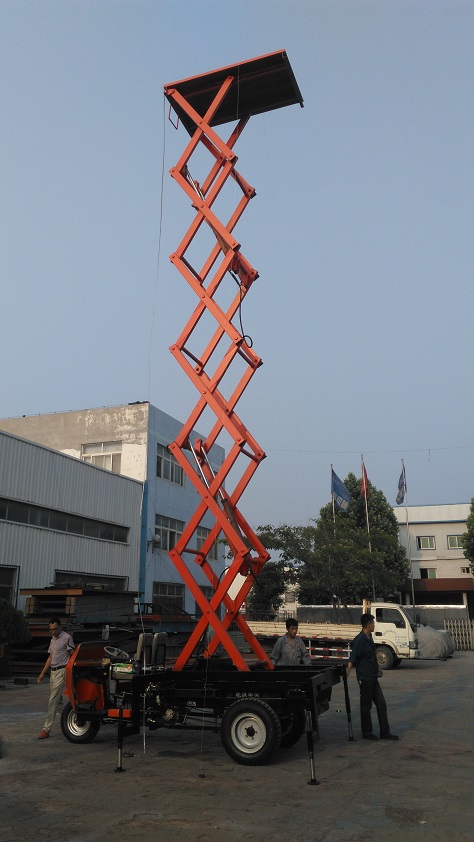济南大力神、大力神、金榜大力神三轮(四轮)电动车、汽车剪叉式升降平台、升降台、高空作业车,采用了三轮车、电动小汽车相结合的结构、可升高6米、8米、10米12米、14米。该产品结构简单、操作方便轻巧灵活,及环保又节能,如电动三轮升降平台一次性充电可行驶五十公里左右,也可以边工作边充电。大大提高了工作效率、减少了工作时间、减轻了劳动强度和劳动成本,是一种现行社会工作中不可缺少的环保使用产品,也是高空作业的之选。