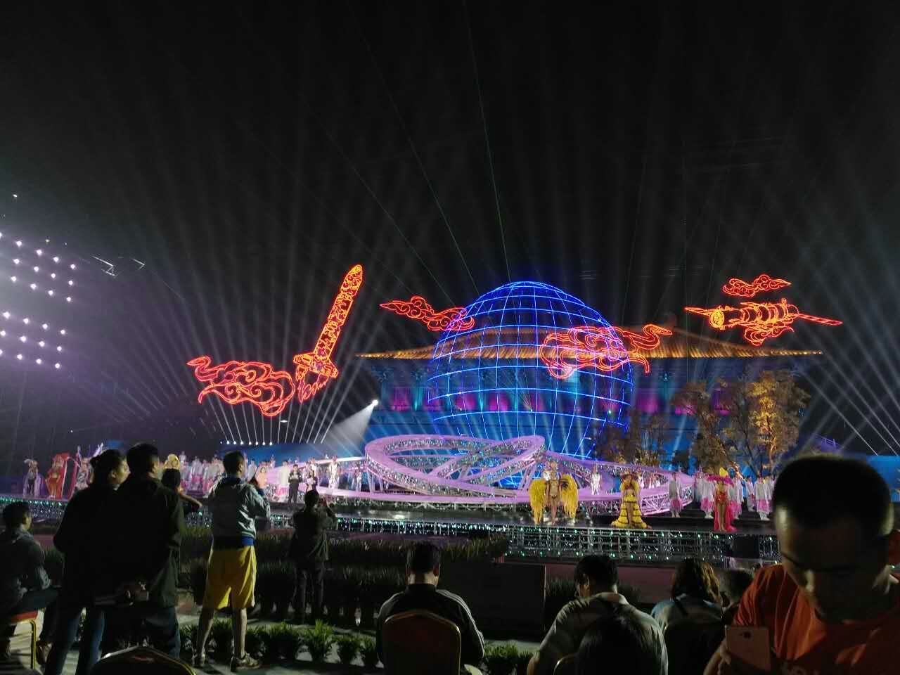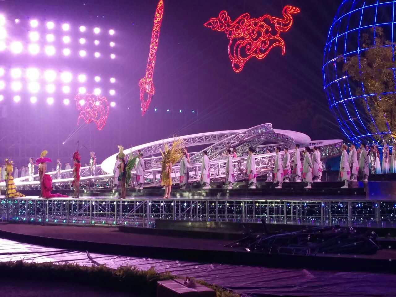 济南大力神机械制造有限公司为西安电影节制造的升降舞台安装、调试、彩排进行中